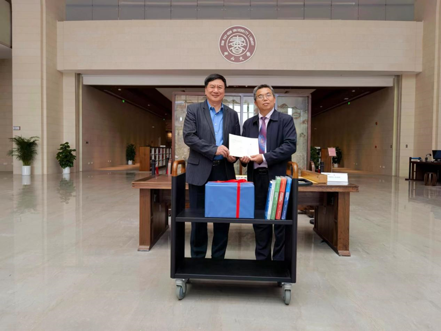 当天下午,兰院士将3套《精准农业航空遥感技术》《精准农业航空植保技术》等六部专著,分别赠送给了深圳校区图书馆和农学院智慧农业团队。学校图书馆冯东副馆长等为兰院士在深圳校区安排了捐书交接仪式,颁发了捐书证书,并介绍了图书馆的建设及运转情况。农学院党委书记程月华、智慧农业教研室副主任周望副教授、党政办主任李秀花等参加了交接仪式,并陪同来宾参观了图书馆,拜谒了孙中山铜像。