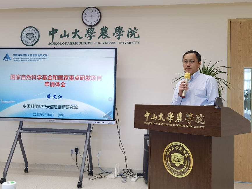 黄文江研究员首先做了“国家自然科学基金和国家重点研发项目申请体会”分享报告。黄老师结合自己 “全球粮食和病虫害监测与预警”项目等丰富的科研经历,从如何明确科研定位、获得基金支持,基金申请书整体思路、撰写要点、科研诚信、易犯错误等方面,为青年老师们做了深入剖析和具体解读。