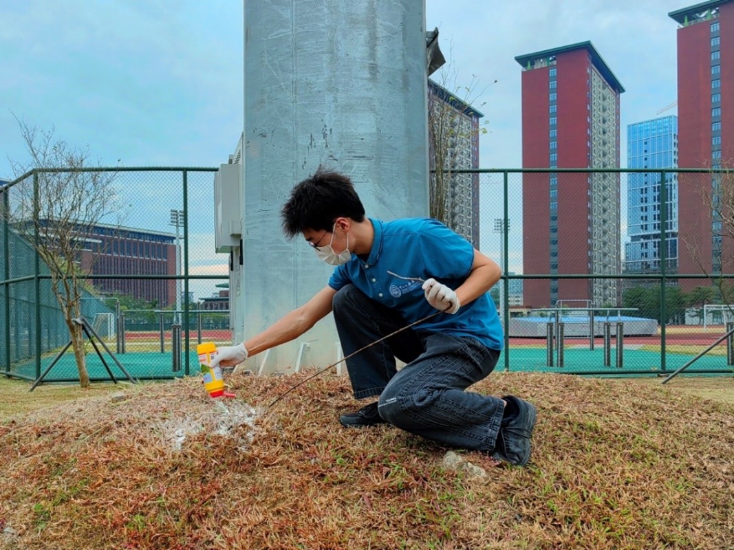 11月以来,为助力校区保障校庆期间校园生态安全和师生健康,营造安全和谐的校园环境,学院红火蚁防治小组再次行动,开展了“校庆护航-红火蚁专项防治行动”。本次行动重点针对校庆期间返校校友和师生活动较为集中的区域的红火蚁巢穴进行检查与杀灭,有效降低了红火蚁对校园重点区域的影响,为师生和校友在校庆返校期间顺利开展各项活动提供了有力的保障。