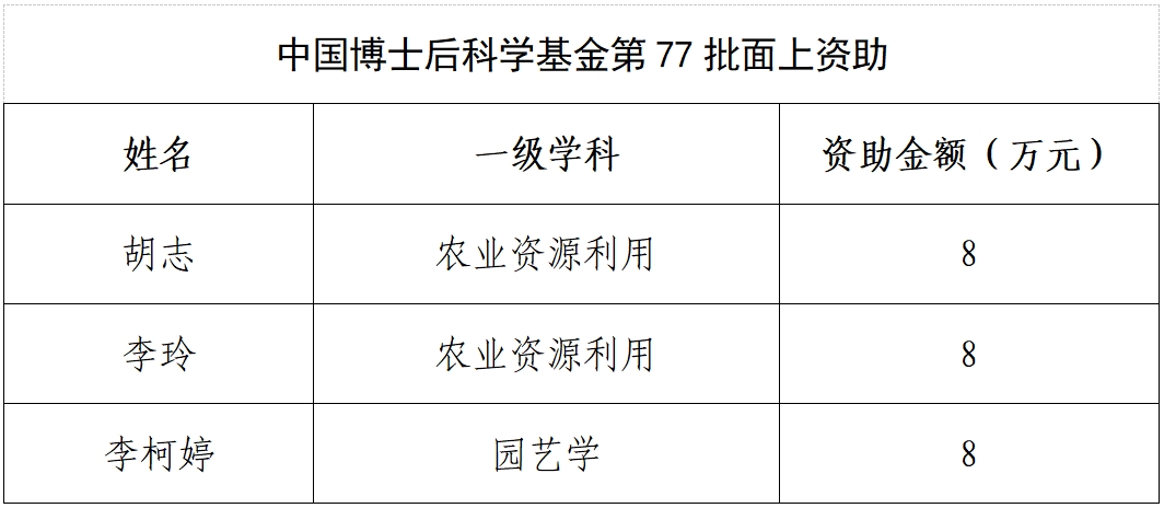 近日,中国博士后科学基金会公布了2025年度中国博士后科学基金第18批特别资助、第77批面上资助拟资助人员名单,我院王璠博士后获第18批特别资助,胡志、李玲、李柯婷3位博士后获第77批面上项目资助,学院在中国博士后科学基金项目数量创历史新高。