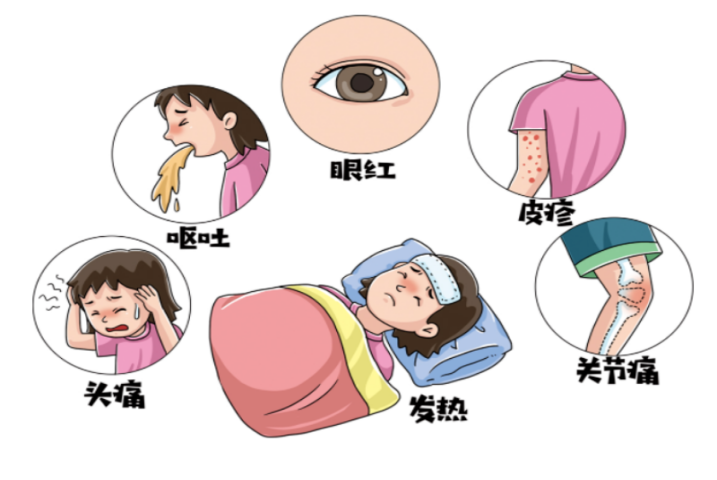当携带基孔肯雅病毒或登革病毒的伊蚊叮咬人体后,都可能导致突发高热、明显的关节和肌肉疼痛以及剧烈头痛。然而,“两热”在潜伏期、疼痛特征和疾病转归上存在差异:基孔肯雅热的潜伏期通常较短(2-4天),其最突出的特点是剧烈的小关节疼痛,且约10%-15%的患者可能迁延不愈,发展为持续数周甚至数月的慢性关节炎;登革热的潜伏期稍长(5-8天),疼痛更以全身肌肉酸痛、骨痛(故有“断骨热”之称)和眼眶后疼痛为特征,少数患者可能发展为重症登革热,出现出血、休克等危及生命的症状。