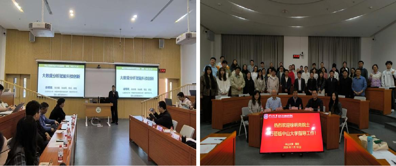 2026年1月18日上午,中国工程院院士、国际欧亚科学院院士、山西农业大学学术委员会主任徐明岗教授,应邀在中山大学深圳校区做了“大数据分析赋能科技创新”的精彩的前沿专题报告。报告会由谭金芳教授主持,学院60余名师生共同参加。期间,邰忠智副校长亲切接见了徐明岗院士,对徐院士的到来表示热烈欢迎,并为中山大学农业与生物技术学院提供的宝贵指导表示衷心感谢。邰副校长语重心长地提醒在座教师要不忘学校复办农学初心,克服浮躁心,理论联系实际,在国家农业强国建设中做贡献。