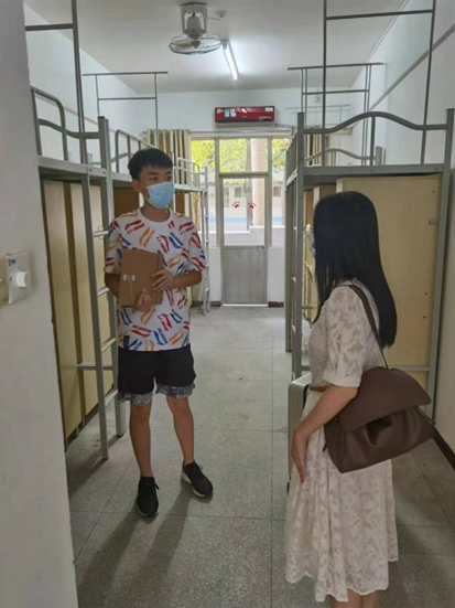 9月1日傍晚,陈素玲老师和兼职辅导员、博士生王健,党建助理、博士生曾凯,一同走访学院新生宿舍。老师和师兄们亲切询问了新生的报到和入住情况,现场解答同学们提出的问题,介绍学校有关学习和生活等方面的信息,鼓励新生尽快适应大学的学习生活,并重点提醒了疫情防控、宿舍安全卫生、严防诈骗等事项。