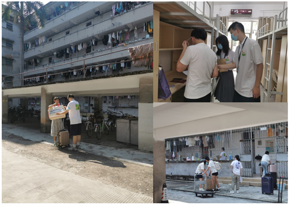 报到当天,党委副书记胡罡、团委书记兼2022级本科辅导员陈素玲、学生第三党支部全体党员以及迎新志愿者早早地在新生宿舍区准备就绪,指引新生做好各项报到手续,协助新生搬运行李入住宿舍,并前往宿舍为新生发放校园卡,解读新生资料,解答校园生活方面的问题等,帮助大家顺利完成线上报到、宿舍入住、核酸检测等系列报到事项。