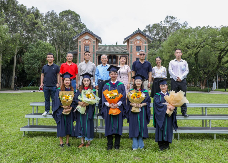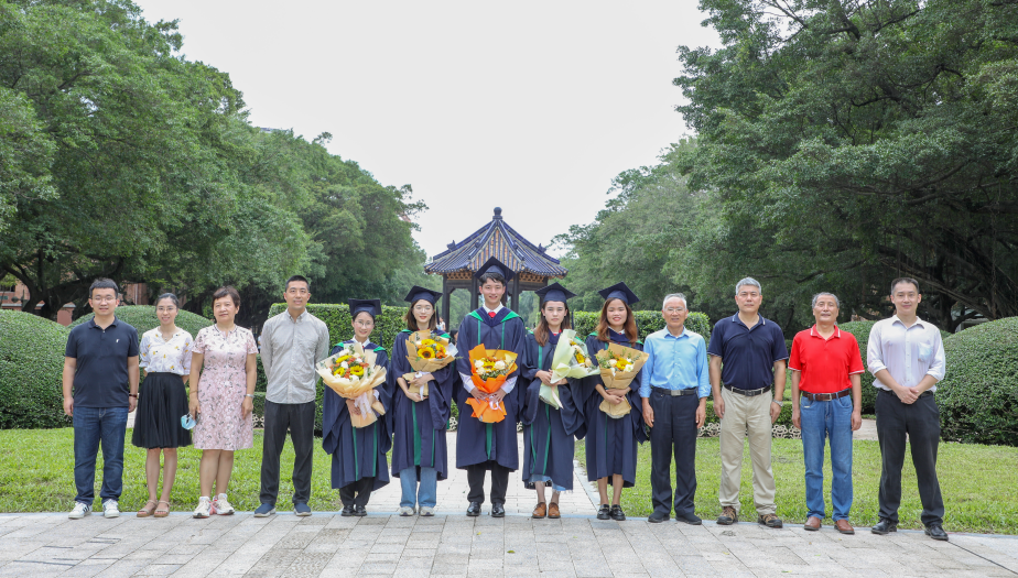 学院领导和老师们首先同即将离校的硕士毕业生在广州校区南校园怀士堂等标志性建筑前合影留念,希望同学们不忘母校培养,筑牢家国情怀,建设国家,支持学校发展,关爱学弟学妹。