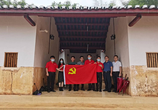 座谈结束后,调研组一行来到位于岐岭镇荣福村的农学院抗战办学旧址涂屋和新苏屋,了解办学旧址修缮工程进展和开发利用规划情况。歧岭镇镇长魏冠东、荣福村村委会书记孔伟星等介绍镇村两级一年多来的发展变化,以及旧址保护、修缮、宣传与开发情况。双方冒雨实地研讨了以两处办学旧址为核心,建立完善红色传统教育、劳动教育和科教研学推广基地的规划。