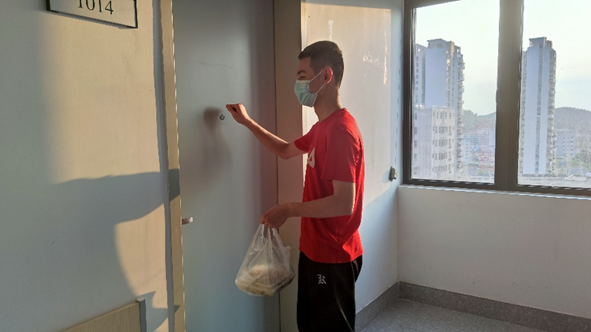 疫情严防之下,返校的同学都严格遵守非必要不出宿舍门外,但是隔离环境并不会隔离关怀,学院同学们提出的驱蚊器、卫生清理等需求都通过楼长传达给楼管们,并得到及时的反馈;而按时送上门的一日三餐、门口垃圾袋的定期清理、分批即验的“三日三检”,更让同学们感受到关怀备至。