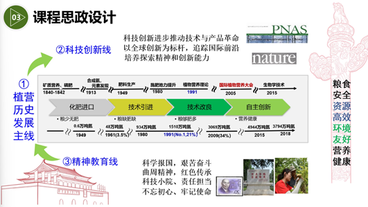 随后,中国农大资环学院的大北农教学名师张俊伶教授做了题为“ ‘课程即思政’ 教学分享--以《植物营养学》为例“的讲座。张老师结合《植物营养学》教学实践,分享了课程思政设计思路:以学生为中心,以植物营养学历史发展主线,结合科技创新和精神教育两条辅线,把事、人、物结合起来,阐述“中国粮需要中国肥、中国肥需要中国技术”的理念,启迪同学们“顶天立地、仰望星空、脚踏实地”信念和智慧。张老师与我院青年教师互动交流时,还分享了引导学生提前预习、活跃课堂问答互动等教学技巧,引导学生提升学习兴趣和巩固专业思想。
