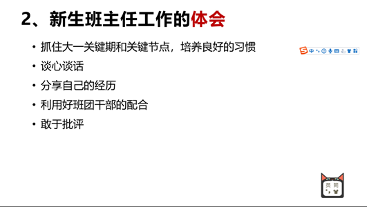 接着,中国农大资环学院优秀青年教师班主任赵锦副教授交流了自己作为高校班主任工作的思考与体会。赵老师从明确青年教师班主任的工作职责和工作重心讲起,通过深入接触、言传身教、敢于批评等工作方法和事例,分享了班主任存在感、融入感和幸福感的体会。赵老师还与我院青年教师班主任交流了处理好班主任工作与教学科研工作协调互促关系的体会,以及对有学习困难同学的帮扶措施。