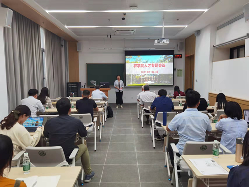 11月3日,农学院在深圳校区召开人才队伍建设专题会议,传达贯彻学校2021年秋季工作会议精神,总结近期人才招聘工作,布置年底前人才队伍建设任务,凝心聚力,努力加快学院人才引进速度和提高队伍质量。会议由学院党总支程月华书记主持,学院党政领导和教职工参加了会议,组织部组织员罗干坤应邀到会指导。