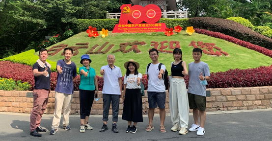 早上8:30许,在分工会委员刘婧娜老师的精心组织下,程月华书记、谭金芳院长和六位青年教工一起,兴致勃勃地游览白云山。在庆祝建党百年的绿植花坛前,大家怀着敬仰的心情情不自禁地驻足点赞;在碑林前,大家认真了解中国近现代革命的抗法、甲午战争等领袖人物简介;在朱德元帅题字“锦绣南天”的摩星岭脚下,大家深切缅怀朱德元帅的丰功伟绩;在摩星岭山顶,面对距北京1900公里的地标,大家不由感慨祖国的辽阔和人民的团结,并纷纷用手机录像分享给远方的亲朋……
