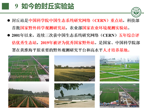 接着,谭院长又向大家展示了封丘由经饱受盐碱化之害,如今成为米粮川的巨变。2001年以来,封丘野外观测站连续三次获中国生态系统研究网络(CERN)五年综合评估优秀生态站,2019年被评为优秀国家野外观测站,如今已经成为国家、中国科学院部署在黄淮海平原重要的野外观测研究平台和高水平人才培养基地。1000多名科研人员和2亿农民经过20年的艰苦奋斗、不懈探索,让这片土地一跃成为中国农业主产区,更体现了一代封丘人砥砺前行、脱贫攻坚、敢为争先的决心和毅力。