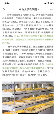 去年11月,结合“不忘初心、牢记使命”主题教育,农学院党支部鼓励学生会开展了“节约粮食,从你我做起”的专项调研,探究粮蔬浪费的原因和改进措施。调研得到12个学院537位师生的支持、参与,结果显示: “从不剩饭”者占27.56%,“偶尔剩饭”者占53.26%,而“经常剩饭”和“餐餐剩饭”者占19.18%。对于全球粮食危机现象,师生48.98% “了解且关心”,23.28% “了解但不关心”,27.75%“不很了解”。
