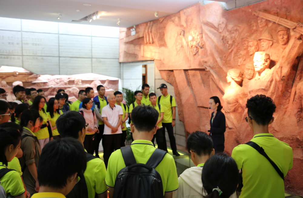 活动最后一站——东莞市东江纵队纪念馆。师生们首先在纪念馆报告厅观看了东江纵队的介绍短片,随后跟随讲解员认真了解东江纵队在抗日战争可歌可泣的事迹。同学们了解到,在国家危亡的战火纷飞时代,包括中大学子在内的一群知识分子,毅然投笔从戎,成立了东江纵队,由最初200多人发展到1.1万人的抗日力量,成为活跃于广东地区的一面抗日旗帜,为中华民族抗日战争的胜利做出重要贡献。同学们沉浸于历史,深切缅怀东江纵队的各位英烈,立志以他们为榜样,将来报效国家。