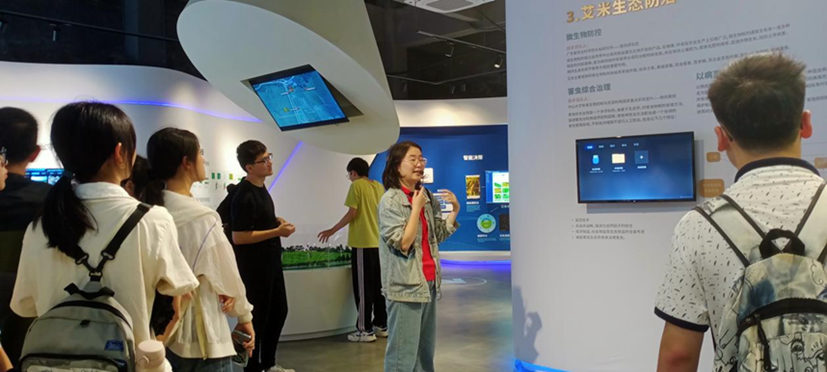 通过农业专家的讲解,同学们了解到:艾米小镇立足于高科技的生态种植,建立了全国领先的水稻生态种植标准化流程,实现了从育种、种植、存储、加工、到产品定制配送的全产业链控制。在学科交叉和产业合作方面,艾米小镇携手华为和中国电信等行业巨头,开启5G智能农业新时代,利用大数据、云计算、卫星导航、人工智能与物联网技术,研发了数字农田系统、智能管理与决策系统、智能解决方案、田间作业机器人,并投入示范运用。通过专题讲解,加深了同学们对于现代农业综合多学科融合这一特点的认识。