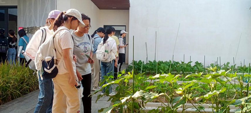 在艾米实践基地工作人员的带领下,师生首先参观了艾米稻作文化馆。在馆内,同学们认真并耐心地听讲解员的介绍,了解了各式各样无农药处理的有机作物,参观了建国初期的饭票、农业书刊等,对我国农业的发展历史有了进一步的认识。