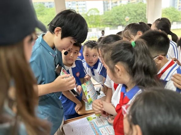 在活动现场,我院团委志愿者们循循善诱,耐心地给出提示,引领小朋友们猜出问题答案,在游戏后还认真地为他们讲解科普知识。丰富多彩的游戏摊位吸引了众多同学甚至小学老师的的积极参与,现场尽显青春朝气。