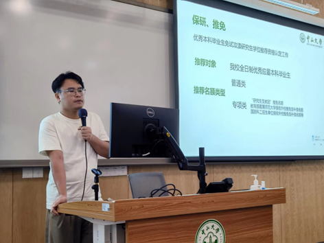 高梓涛老师结合学院发展实际,宣讲了学校推荐免试攻读研究生学位资格认定工作实施办法,并就同学们关心的推荐比例、时间节点、考评方式等问题做了重点讲解。他提醒同学们提早规划深造路径,努力学好专业课程、提升综合素质,做好免试读研和统考读研的双重准备,发掘自己的潜质,为社会作出更大贡献。