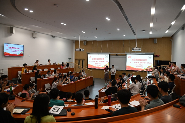 为了深入贯彻习近平总书记在庆祝共青团成立100周年大会上的重要讲话精神,贯彻落实学校春季工作会议精神,五月中旬以来,学院结合《形势与政策》《国家安全教育》《劳动教育》三门课程学习,开展了综合素养系列学习教育活动。6月2日,为活跃学习氛围、提升学习实效,农学院在深圳校区主办、院学生会承办了“激情燃五月,青春献祖国”综合素养知识大赛,同时设置广州校区线上分会场。农学院程月华书记、胡罡副书记、陈景光院长助理,周潇峰、魏蜜、李晓云等专任教师辅导员和全体本科生参加了比赛。