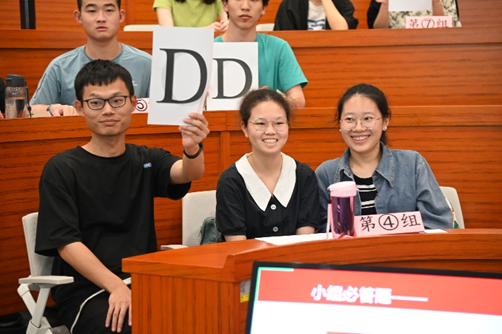 随后,大赛拉开帷幕,进入烧脑的综合素质比拼。在必答题环节,每个小组严谨又认真地回答每一个问题;在抢答题环节,比拼的不仅是思维敏捷,还有眼疾手快;最后的选答题环节,因为回答正确的得分和回答错误的扣分分值设置均较高,为了赢得最后的胜利,每个小组在专注思考答题的同时,还要与其他小组就“答还是不答”的问题进行心理的博弈。兴奋的掌声、惋惜的叹息、舒心的笑声,在紧张的赛场此起彼伏。
