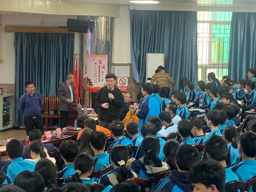 水寨中学钟声辉书记、中英文实验学校贺正光副校长分别代表各自学校,对学院招宣小组的到来表示欢迎和感谢,概要介绍了学校一年来的新发展,勉励同学们珍惜机会,加深对高校的了解,志存高远、理性选择,勤奋学习、努力深造、追求卓越。