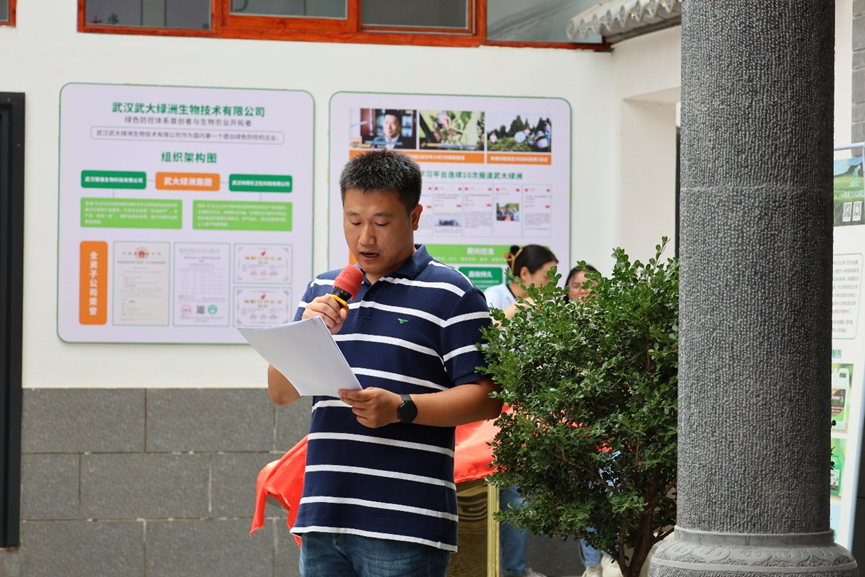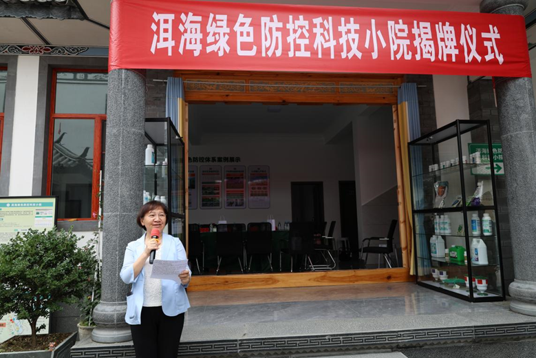首先,由程月华书记代表学院致辞。她简要回顾了中山大学以及农学院在抗战迁徙办学的烽火年代和扶贫攻坚的建设时期,与云南人民守望相助的特殊情谊。程书记表示,近两年,学院遵照习近平总书记“一定要把洱海保护好”的绿色发展要求,发挥学科特长,在地方政府和中国农大的支持下,与武大绿洲生物技术公司联手筹建绿色防控科技小院。学院期望科技小院当地政府支持下,加强与武大绿洲、中国农大、云南农大等兄弟单位的合作,发挥多学科优势,推进产学研用一体化,使小院不仅成为科技创新、研究生培养基地,助力洱海的生态保护;同时成为地方绿色发展的支点,促进农民增收和农业绿色转型,实现洱海生态环境的持久保护与当地人民的生活不断改善,让“苍山不墨千秋画,洱海无弦万古琴”的自然美景与社会主义大家庭团结互助永驻人间。