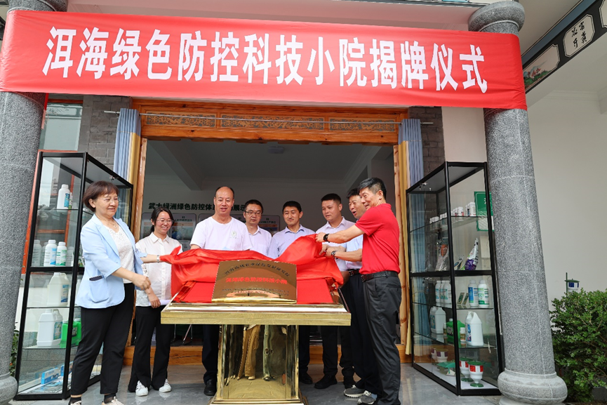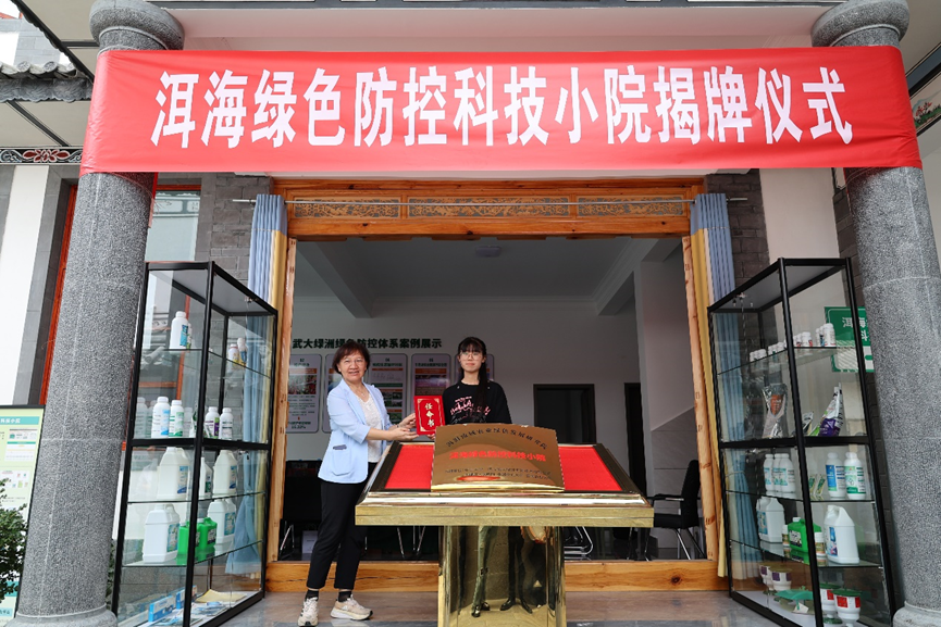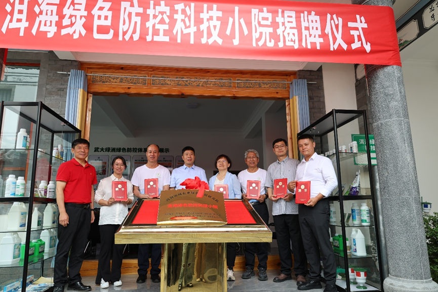 接着,在参加仪式的专家领导和师生们的见证下,程月华书记、林春鸿董事长、赵正雄校长、李健强教授一起为洱海绿色防控科技小院进行了揭牌。