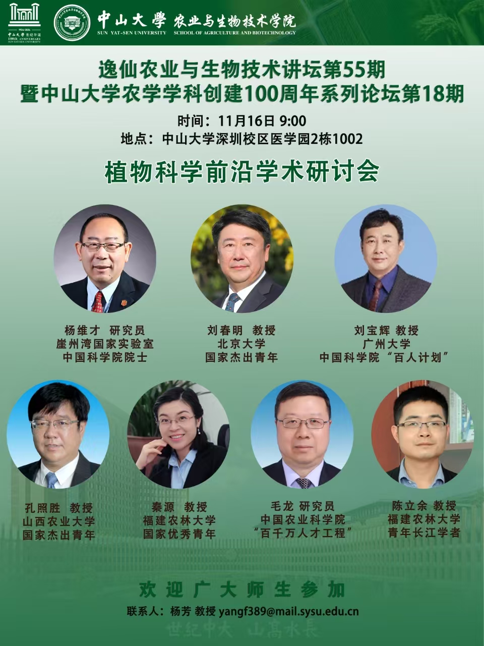 导航痕迹 中山大学农业与生物技术学院 逸仙讲坛第55期暨中山大学农学学科创建100周年系列论坛第18期 | 植物科学前沿学术研讨会 扫描此二维码分享 逸仙讲坛第55期暨中山大学农学学科创建100周年系列论坛第18期 | 植物科学前沿学术研讨会 发布人:万子龙 发布日期:2024-11-15 活动时间 2024年11月16日 09:00 - 2024年11月16日 11:00